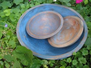Primitive 3 Old Blue Painted Wood Bowls Early Farmhouse
