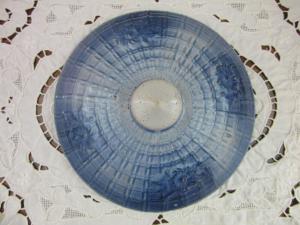 ANTIQUE PRIMITIVE BLUE WHITE STONEWAREPOTTERY LATTICE DAISY LID only 83