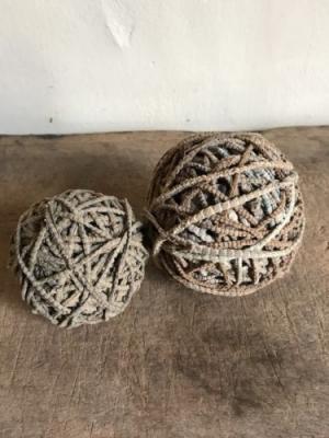 BEST Set Of 2 Large Brown & Blue Rag Rug Balls Handmade Textile AAFA