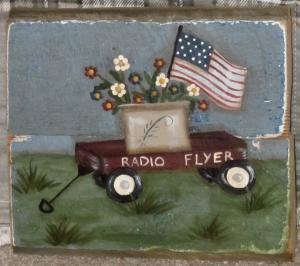 *~*PRIMITIVE*~* HP FOLK ART LITTLE RED WAGON * AMERICANA *FLAG * RECLAIMED WOOD