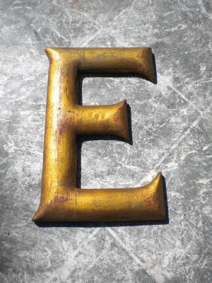 ANTIQUE c1890-1900s GOLD leaf wooden letter symbol E 10'''' H X 6 1/2'''' W
