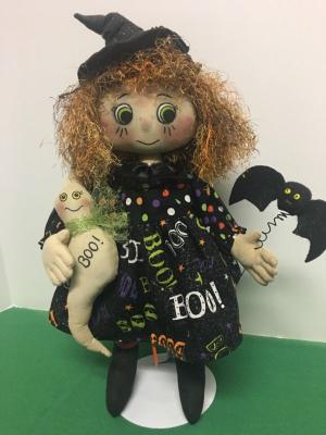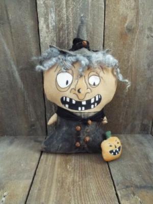 Primitive Hand made Witch Sitter Doll -Halloween-Rustic-Decoration