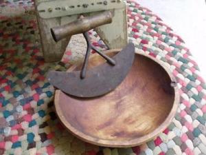 Primitive Antique Wood Chop Bowl With Chopper PATINA! Farm Auction Find