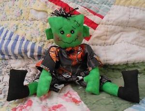 Halloween Frankenstein Doll Skelllington Primitive Raggedy Baby Frankie FolkArt
