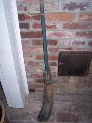 Vintage WHiSK HeaRTH Green Straw & Wood Handle witch style broom 39" Tall