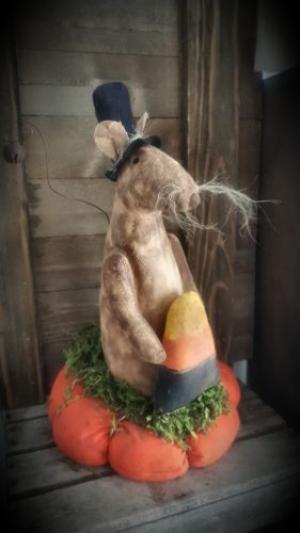 PRIMITIVE HALLOWEEN MOUSE with candy corn and pumpkin fall decor folk art mouse
