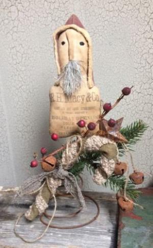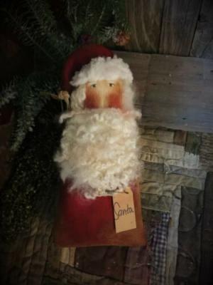 *Primitive 9x5in HOLIDAY SANTA SITTER Fabric HANDMADE Country old rusty doll*