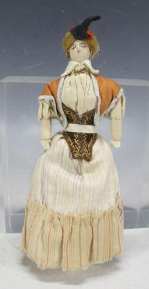 Antique c 1899 Victorian Hand Made Folk Art Cloth Dollhouse 6¾" Lady Doll #1 yqz