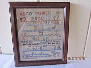 Vintage Framed Cross Stitch Sampler Upper Lower Case Alphabet Numbers Poem Quote