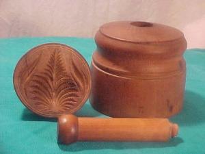 Antique Wooden Butter Mold Press Thistle/ Flower/Pineapple. Design Round Butter