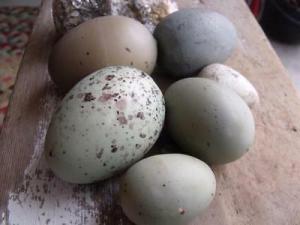 6 Primitive Vintage Painted Eggs Bowl Fillers Wood & Paper Blue & Green Pastels