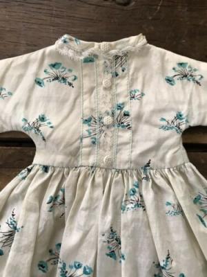 Old Handmade Blue Silk Floral Doll’s Dress Textile AAFA A+ Condition