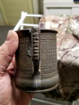 ANTIQUE TIN CUP HANDLED EARLY SOLDERED CIVIL WAR MARKED KITCHEN HOME