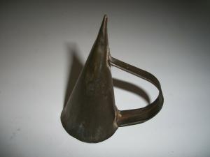 old vintage antique tin metal candle snuffer with handle,primitive,country,small