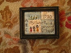 Primitive tiny Sampler~1720 THREE SISTERS~Handstitched on Old Quilt~ Folk Art