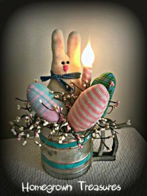Easter! Primitive Bunny and Eggs in Vintage Flour Sifter Lamp!!