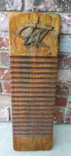 Primitive Antique Wood Carved Folk Art Washboard Creek Board Carved Eagle Top