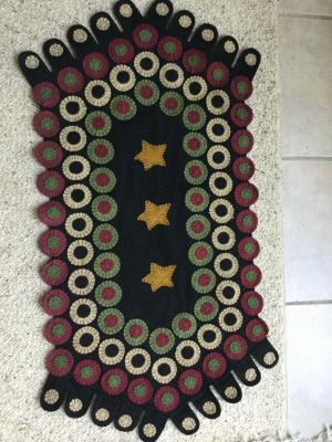 Primitive Wool Applique Folk Art Birds Stars Circls Penny Rug/Table Runner 30”