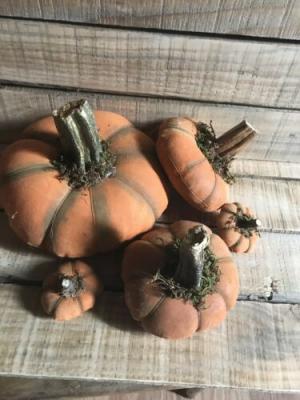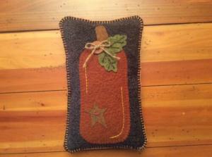 PRIMITIVE WOOLFELT RUSTIC FALL PUMPKIN MINI PILLOW SHELF SITTER