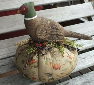 Primitive Hand Painted Pheasant on Pumpkin Make Do ~ Autumn ~ Fall Folk Art