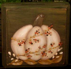 *~*PRIMITIVE*~* HP FOLK ART PRIM WHITE PUMPKIN *~* FALL *~* BOARD