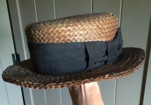 Old Antique Men’s Straw Hat Worn Tattered Fragile Peg Rack AAFA HALLOWEEN? 6-7/8
