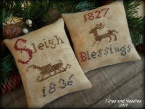 Two Primitive Linen Cross Stitch Bowl Fillers ~ by Pines and Needles
