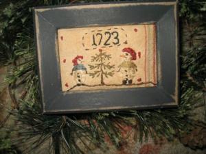 Primitive tiny Sampler~1723 MoM & LiL Girl Snowgals~Early Christmas~ Folk Art