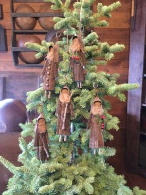 Primitive Little Christmas Brown Leather Coat Stick leg Santa Claus Ornaments