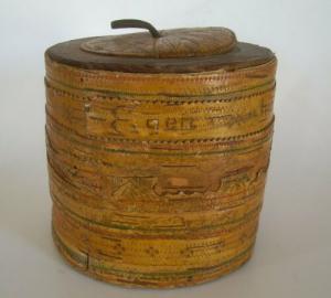 Antique 1800 Spice Set Bent Wood Metal Band Shaker Pantry Round Spice Container