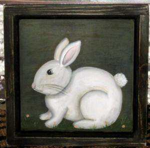 *~*PRIMITIVE*~* HP FOLK ART PRIM CHUBBY BUNNY *~* FLOWERS *~* DOOR PANEL