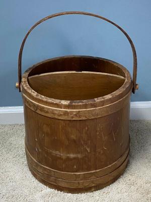 Antique Wooden Firkin Style Barrel With Handle & Divider