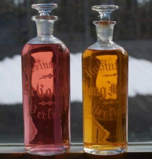 ANTIQUE TWO PIECE CIVIL WAR ERA FLINT GLASS ROBINSONS PERFUME BOTTLES