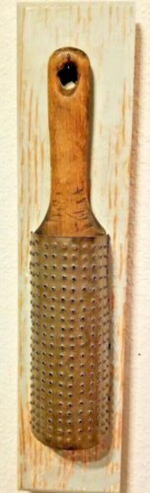 Old Handmade Primitive Hand Punched Tin & Wood Grater ~Hand Held ~ Antique