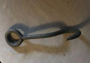 Antique Primitive Cast Iron Hand Forged Hay Bale Meat Hook Farm Tool