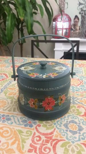 Basketville Antique Firkin Sugar Bucket Folk Art Floral