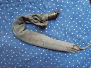 Civil War era Shot pouch. Cloth sling type,brass spout. Black powder hunter
