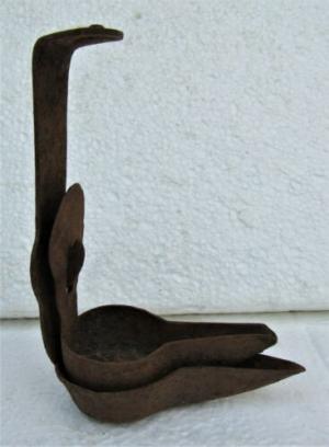 Early Antique Hand Forged 1 Spout Wrought Iron Hanging Betty Grease Lamp Light