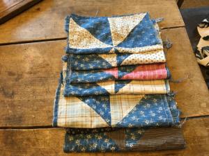 moprimitivepast 7 antique cadet blue calico quilt blocks AAFA lot hand sewn #2