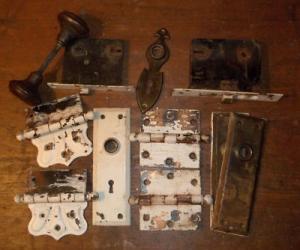 JUNK DRAWER LOT Architectural Salvage Vintage Door Hinges Hardware Chippy Paint