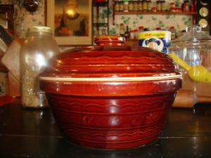 Marcrest Ovenware Stoneware 72 oz. Dutch Oven Colorado Brown Daisy and Dot