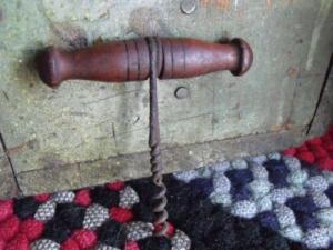 Primitive Antique 1899 Corkscrew Bottle Opener Wood & Wireware Butler