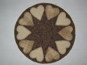 Primitive Valentine Hearts Candle Mat Penny Rug