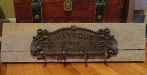 RUSTIC VINTAGE CAST IRON COAT TOWEL RACK ON WEATHERED CEDAR