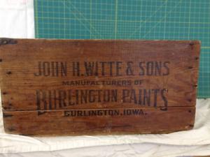 Antique box that held paint cans