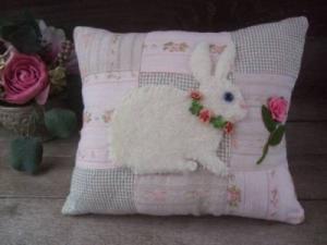 Antique Primitive Bunny Rabbit Quilt Pillow w/ Roses-Folk Art