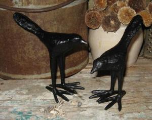 2 BLacK CROW Raven BiRd Statue~For Wood Table/Shelf/Desk/Mantel-Primitive Decor