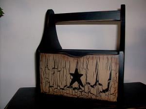 PRIMITIVE WOOD UTENSIL SILVERWARE BOX HOLDER BASKET DISTRESSED COUNTRY DECOR