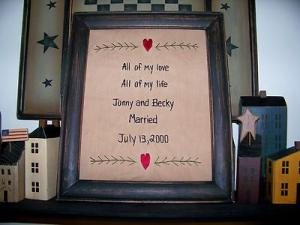 Primitive Country Wedding Anniversary Bridal Gift Shower Idea Picture Stitchery