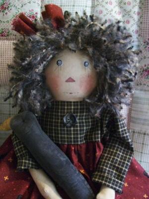 PRIMITIVE FOLKART RAGGEDY ANN~22in~crow-flower